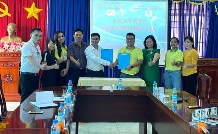 Dịp này, HTX đã ký kết biên bản ghi nhớ hợp tác (BBGNHT) với Trung tâm Xúc tiến Đầu tư, Thương mại và Du lịch tỉnh Bình Phước; qua đó, 2 bên sẽ phối hợp xây dựng chuỗi kết nối các hợp tác xã, nhà nông trong tỉnh với kênh thu mua cuối cùng góp phần xây dựng và phát triển thị trường trong và ngoài nước bền vững, ổn định cho nông sản.